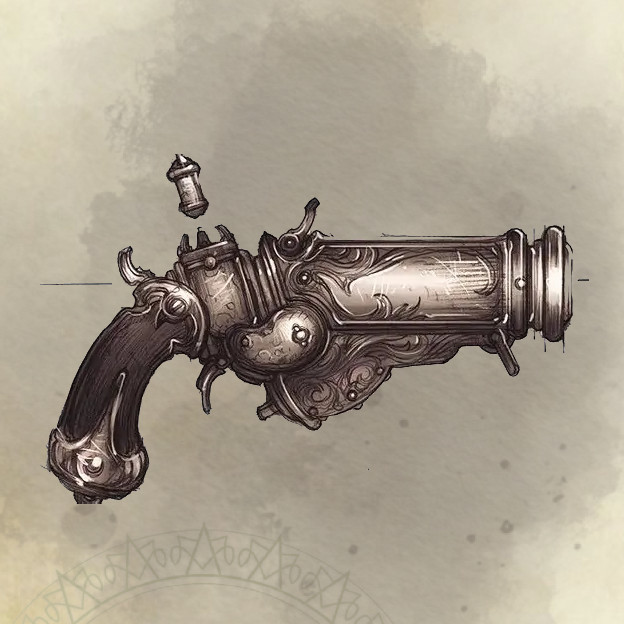 The flintlock is the standard one-handed firearm. Though it fires slowly, it can be dual-wielded for extra effectiveness. Mechanically, it is a reskinned version of a hand crossbow.