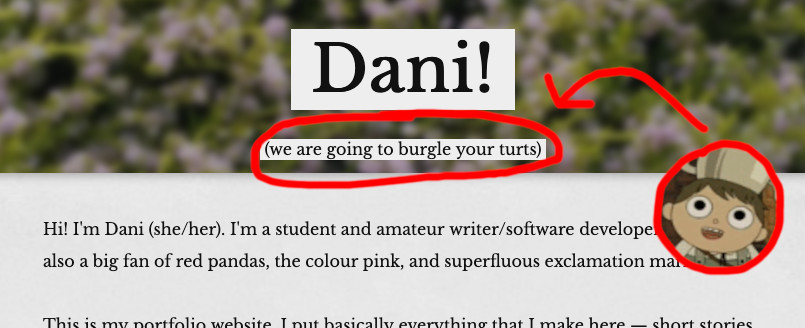 You may also notice that it changes whenever you refresh! The different messages are mainly corny references or quotes. I got the idea from back when I used to use put different quotes in my social media bios each month.